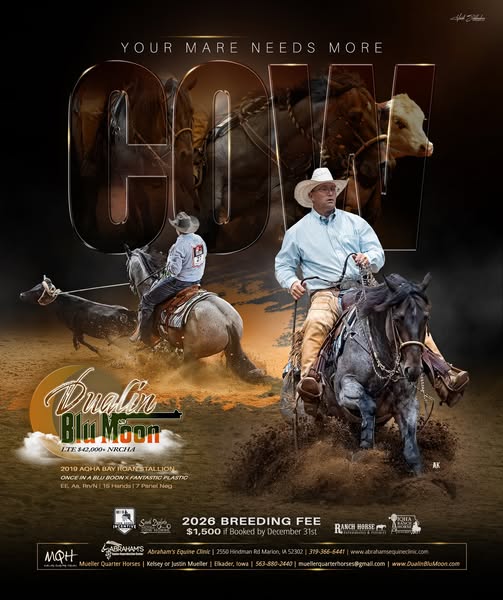Dualin Blu Moon is a 2019 stallion by Once In A Blu Boon and out of Fantastic Plastic LTE 48k NCHA. He has NRCHA earnings of $25,600+ and is still showing. He is 6 panel clean, stands 15h tall, and is homozygous for black (guaranteed black based foal). He has all of the heart and try in the world and is an extremely good minded horse that we are very excited to stand to the public.